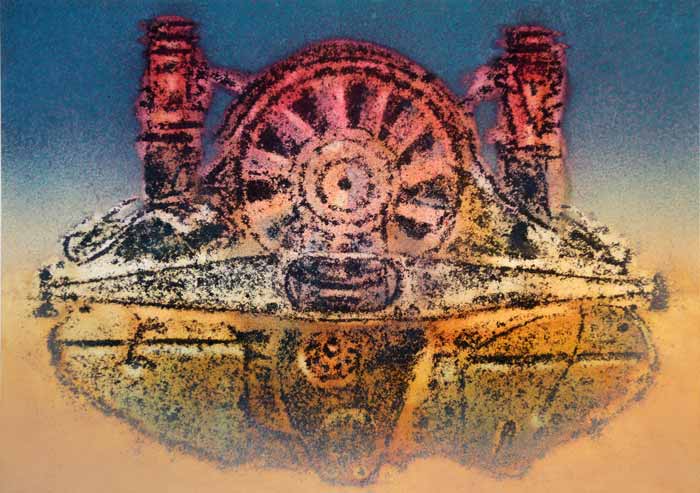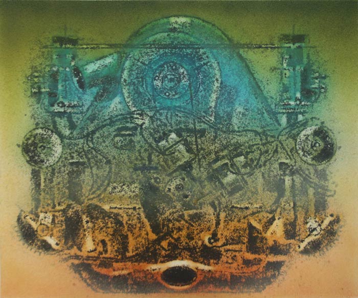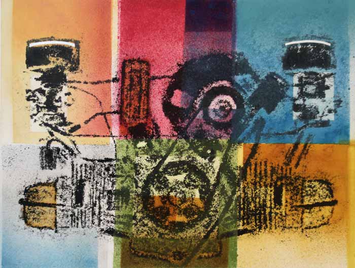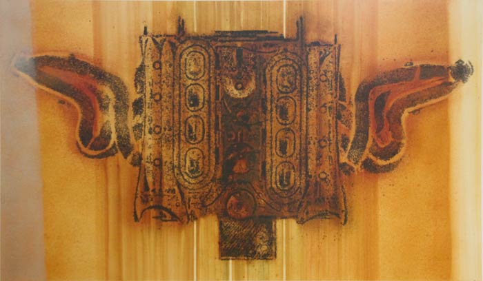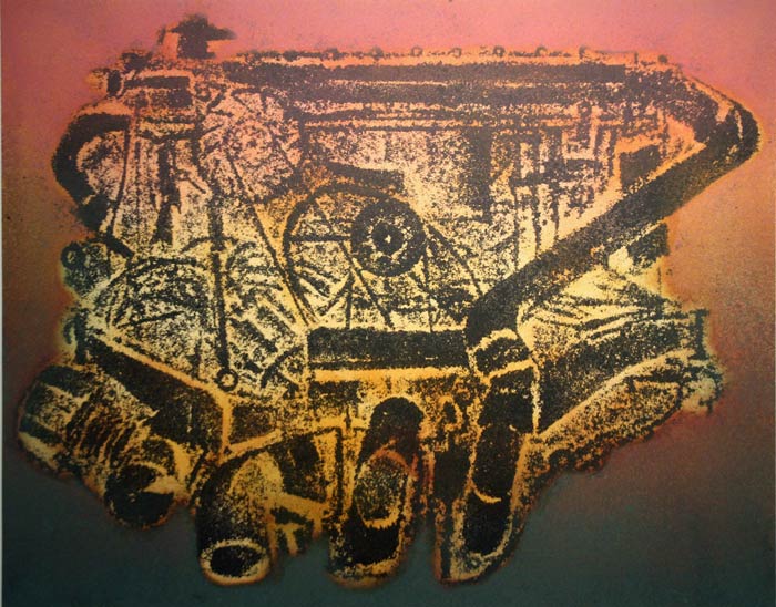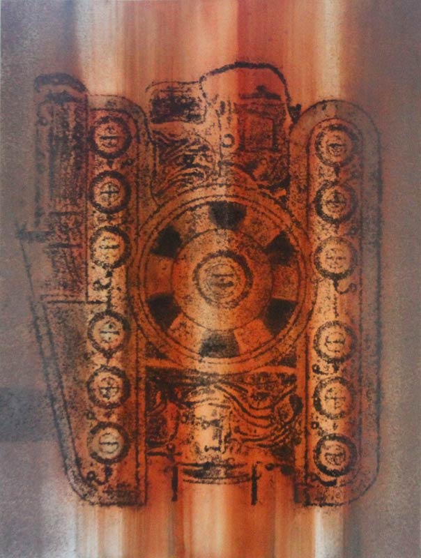 Size: 39"x47" Title: Five Liter Type 912 Exhaust Mixed Media on 200lb Arches
