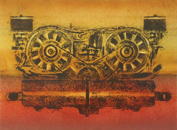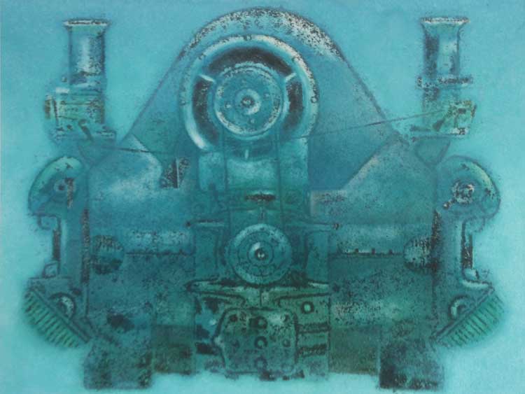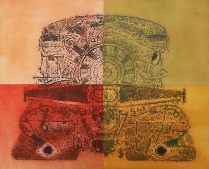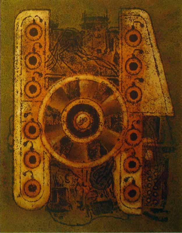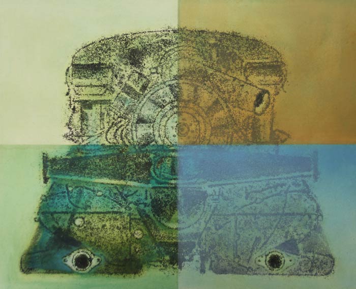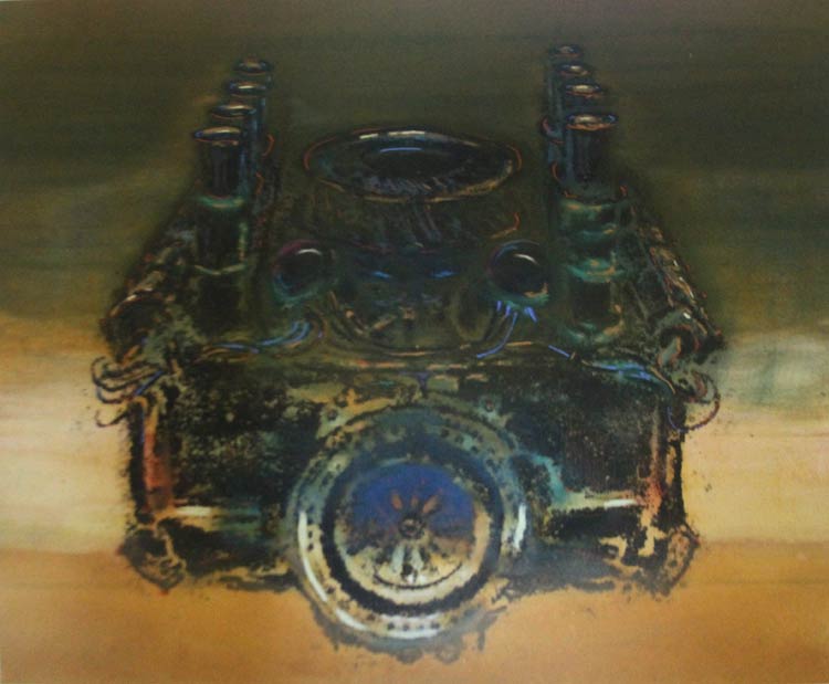 Size: 39" x 50.5" Title: 16 Cylinder Racing Engine Mixed Media on 200lb Arches